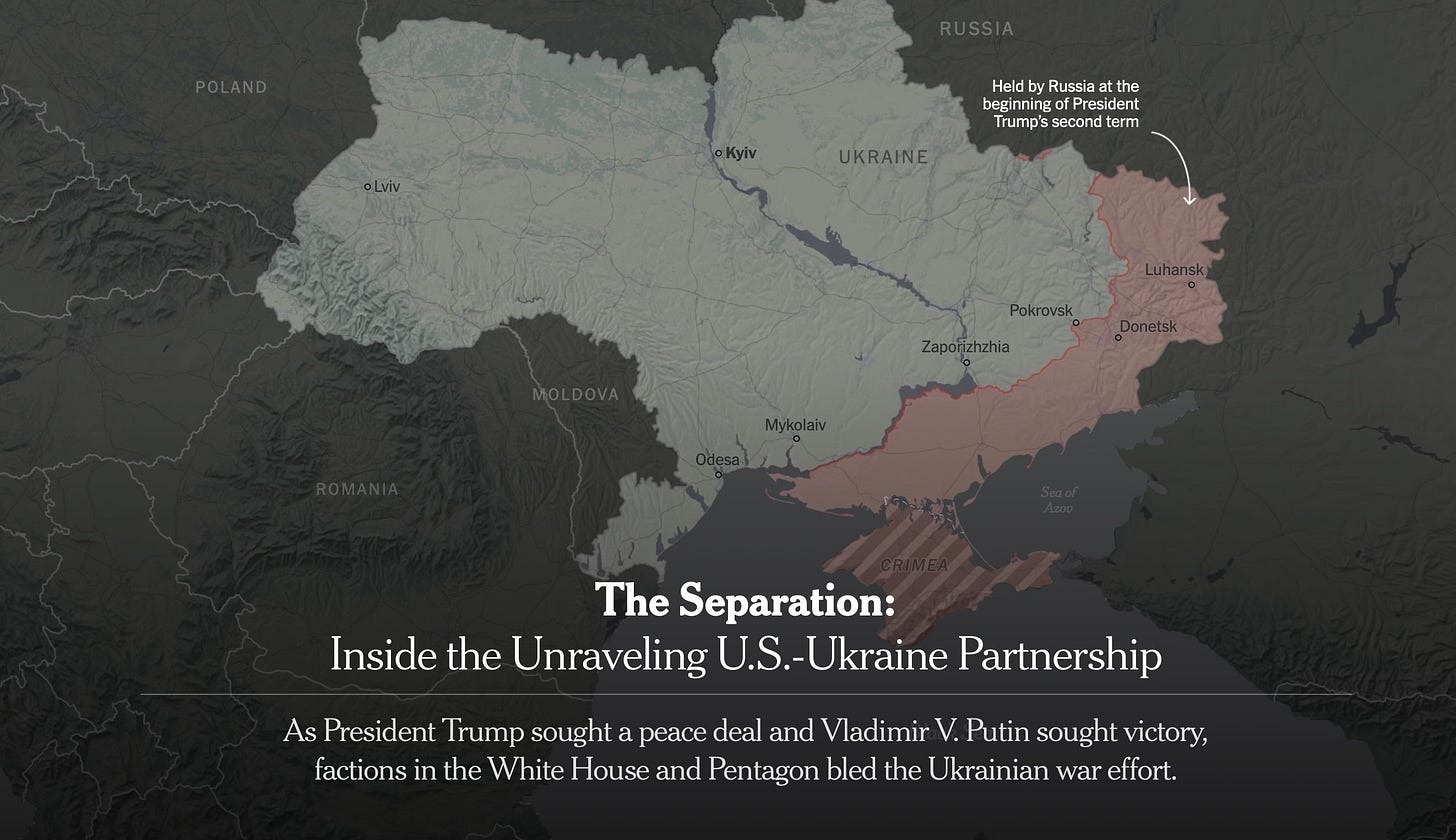 The New York Times dives deep into the Trump Administration's failure to secure an end to the war in Ukraine. It's a damning piece of reporting, demonstrating the lack of process is partly to blame.