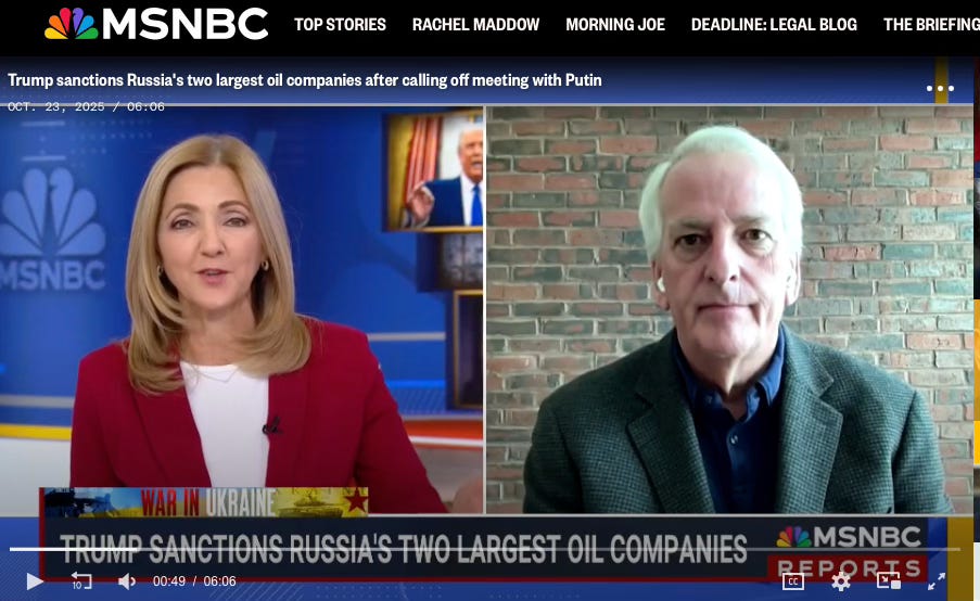 Early this afternoon, I joined Chris Jansing on MSNBC to talk about the oil sanctions, whether Putin will now decide to end the war, and what it says about the Putin-Trump relationship. You can listen to the whole interview here.