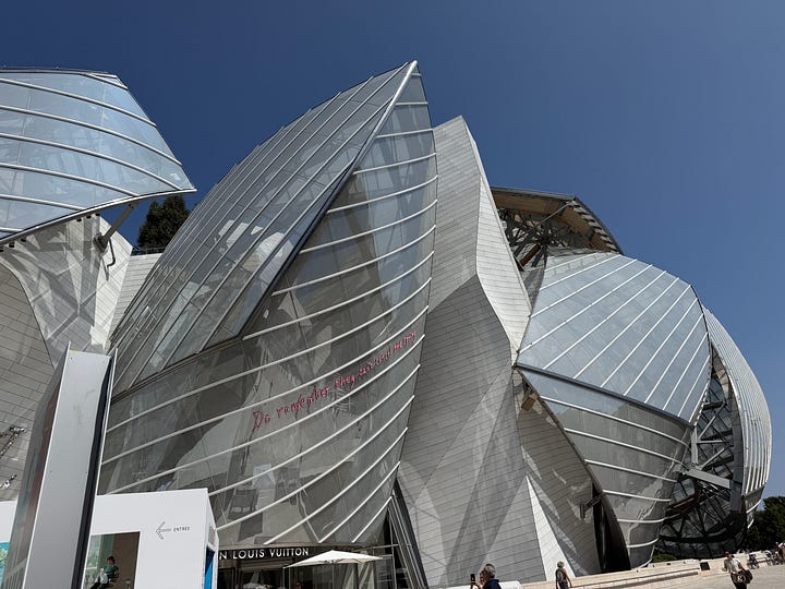 I am France this week — Provence and Paris — and this is what caught my eye: the beautiful Frank Gehry designed Louis Vuitton Foundation museum that is the home of the marvelous David Hockney 25 exhibit through August 31. Enjoy!